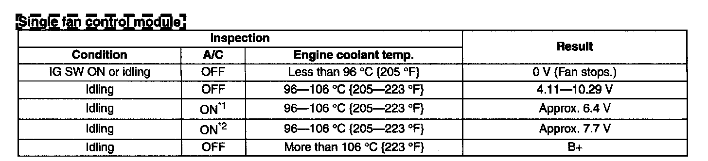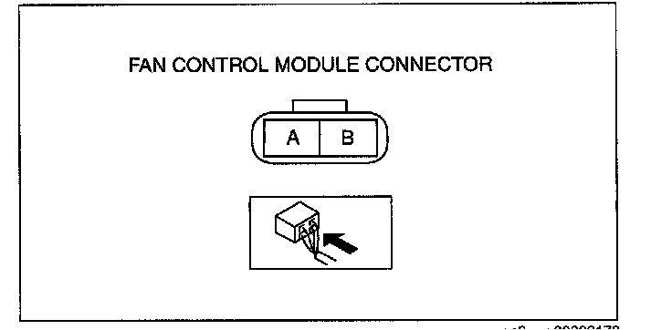 4. Measure the voltage at terminal A of the fan control module connector (2 terminal) as shown in the table.