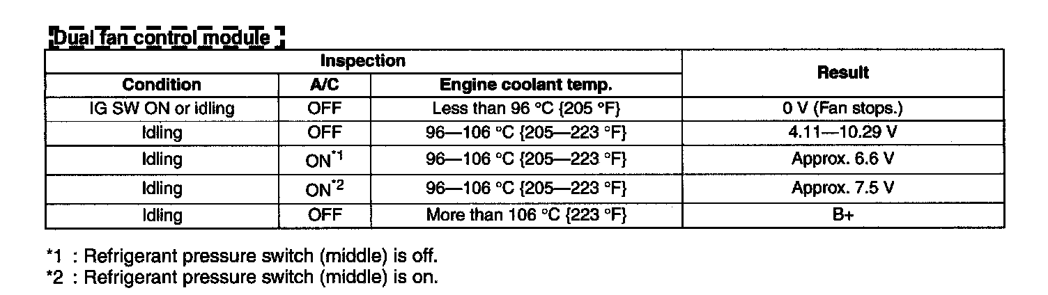 *2 : Refrigerant pressure switch (middle) is on.