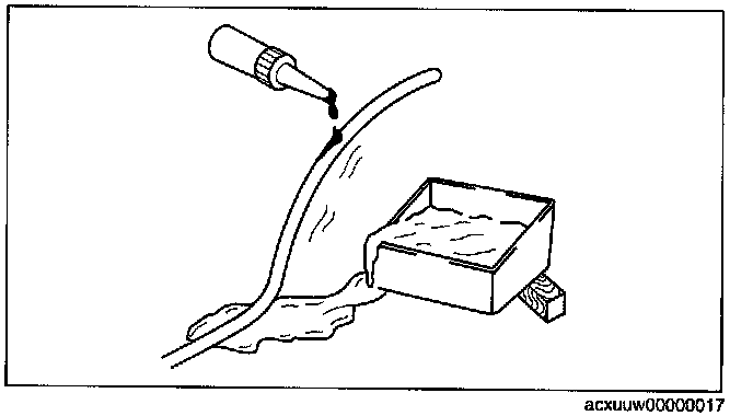 NOTE: Referring to the fluorescent dye instruction manual, mix the specified amount of dye into the engine oil or ATF (or transaxle/transmission oil).