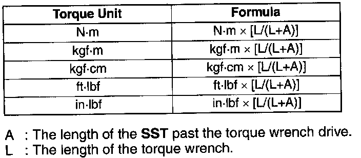 - When using a torque wrench-SST or equivalent combination, the specified torque must be recalculated due to the extra length that the SST or equivalent adds to the torque wrench. Recalculate the torque by using the following formulas. Choose the formula that applies to you.