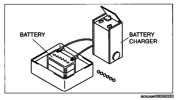 3. Connect a battery charger to the battery and adjust the charging current as follows.