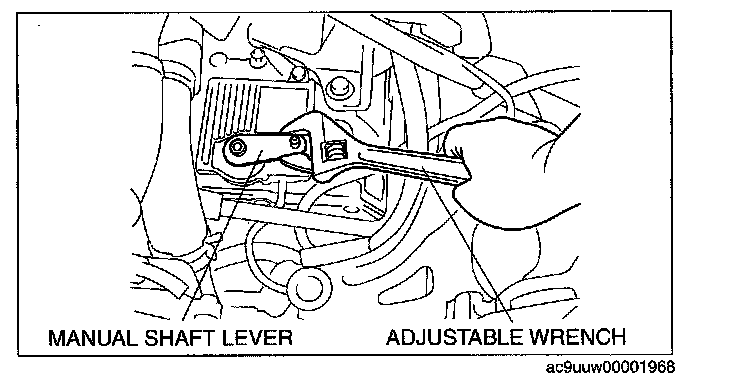 5. Set the adjustable wrench as shown in the figure to hold the manual shaft lever.
