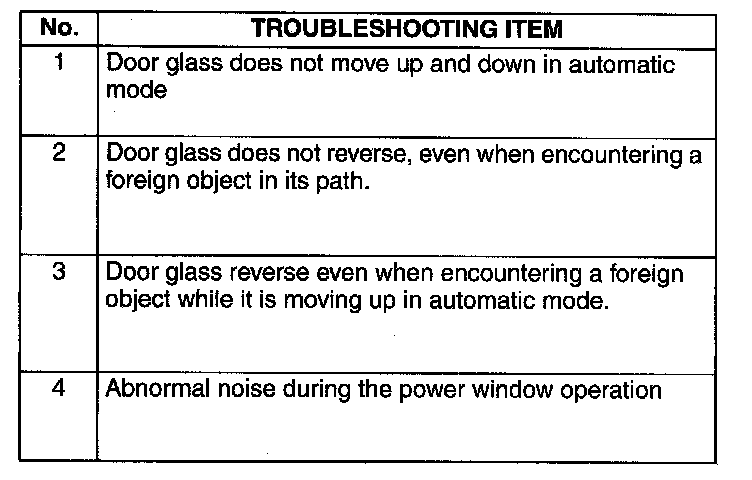 Symptom Troubleshooting Chart (Power Window Systems(Auto-Open/Close Function))