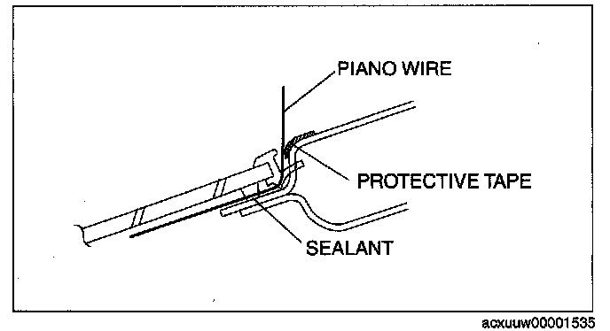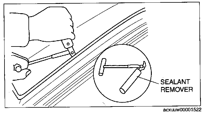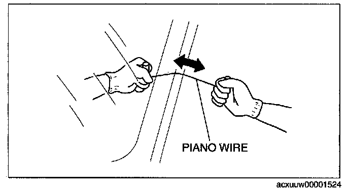 NOTE: For the areas of the sealant that are difficult to cut, use the piano wire and follow the procedure under "Reusing Windshield".