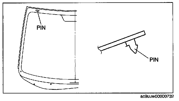 NOTE: Before removing the pin from the windshield glass, place an alignment mark on the windshield.
