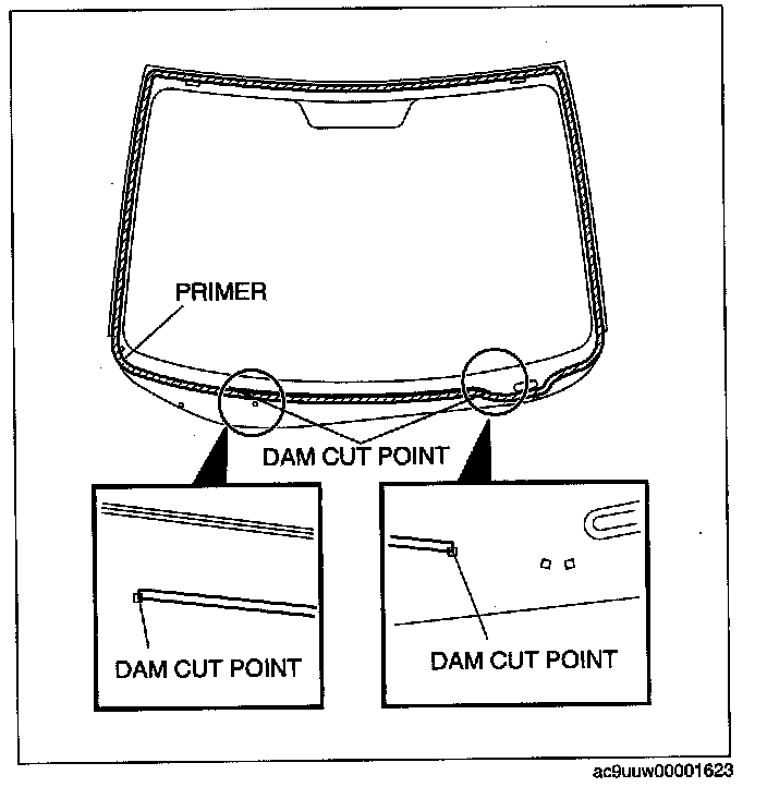 3. If the existing windshield is to be reinstalled, attach the dam along the ceramic voids.