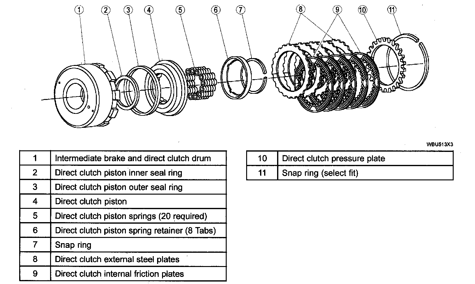 ^ The direct clutch is applied with hydraulic pressure and disengaged by return springs and the exhaust of the hydraulic pressure.