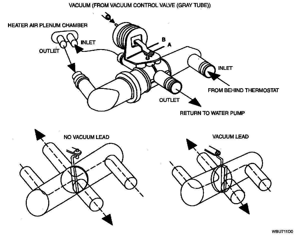 - If vacuum at port A appears in MAX A/C mode but rod position is not correct, replace the water control valve.