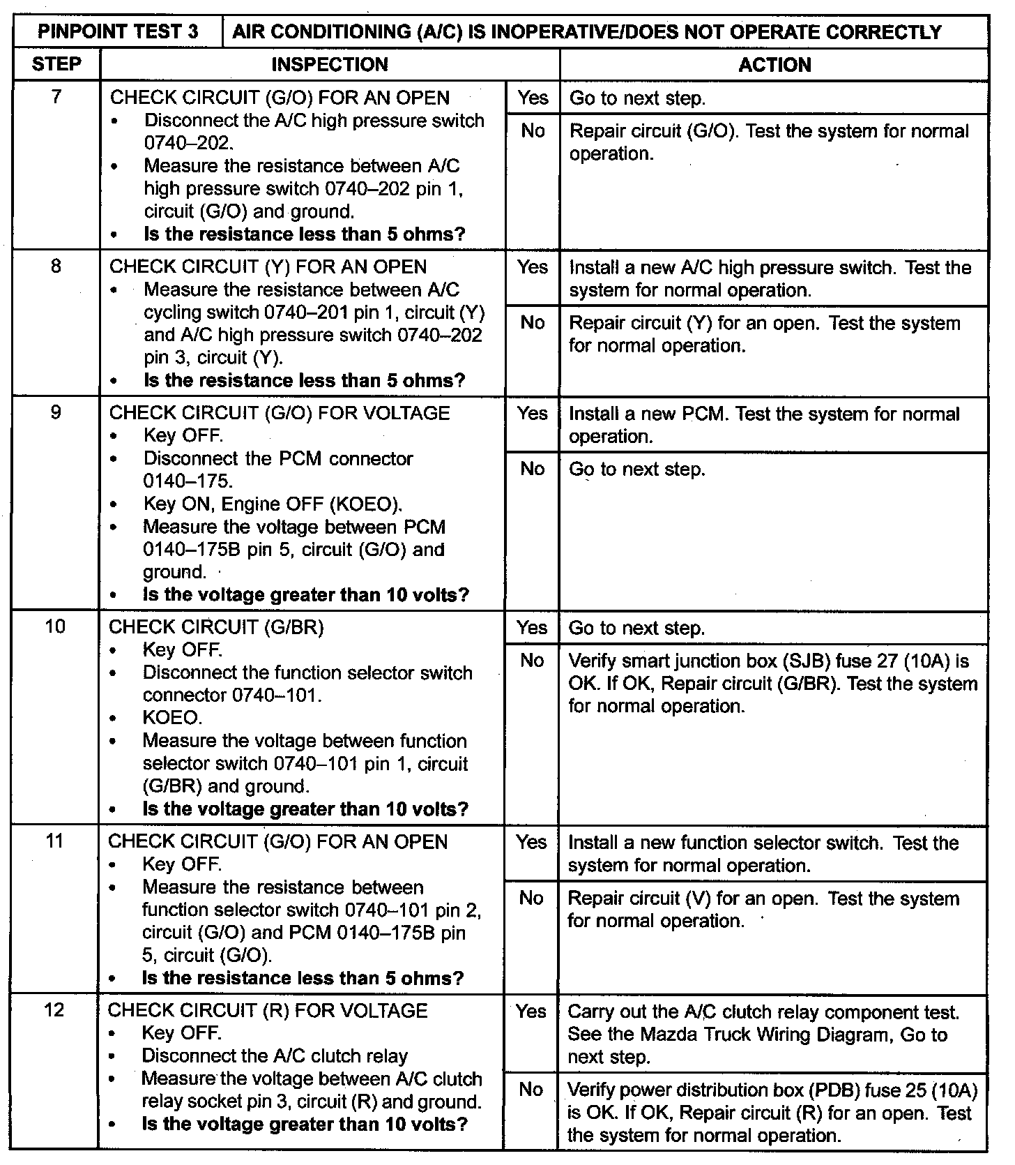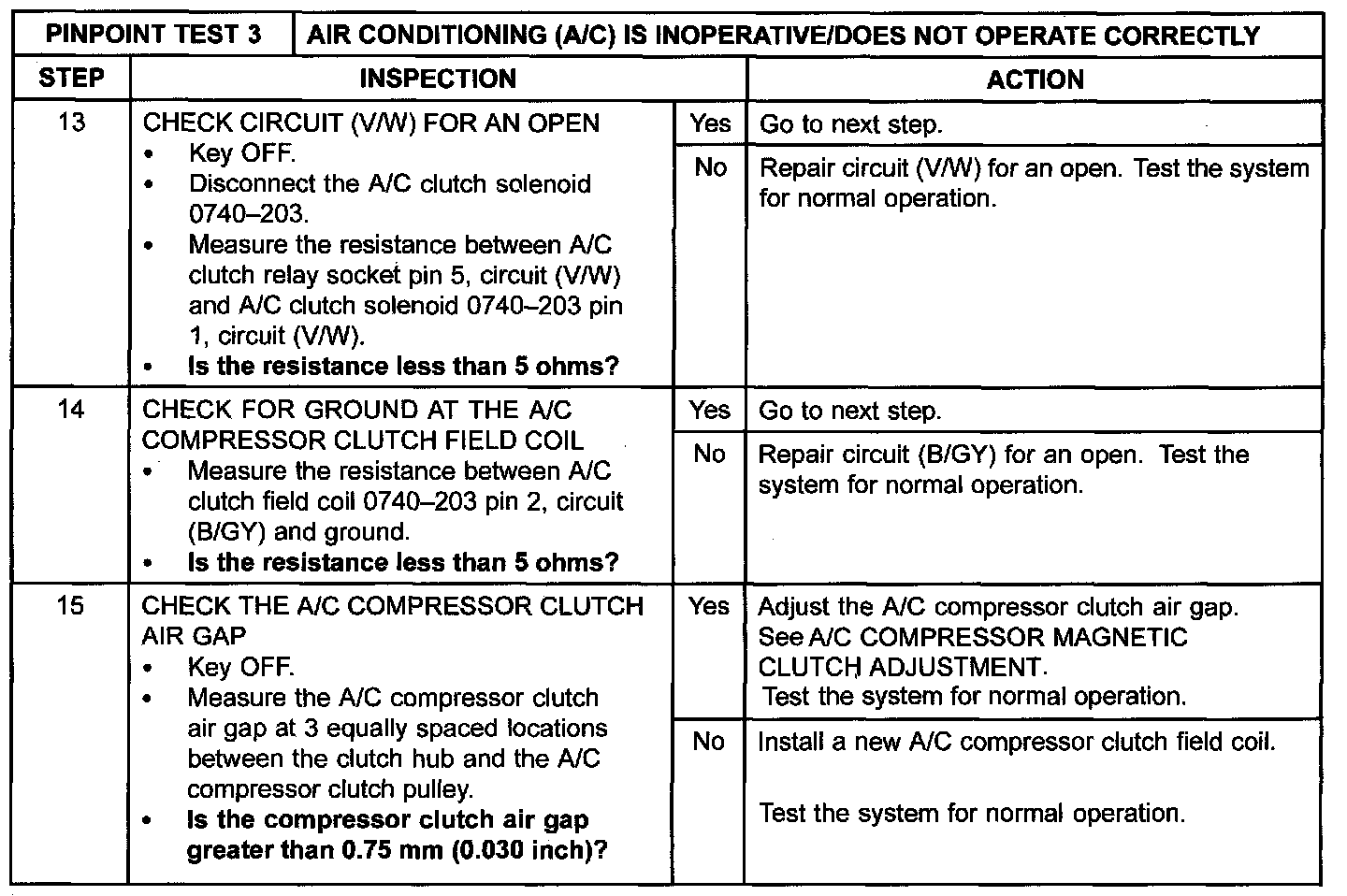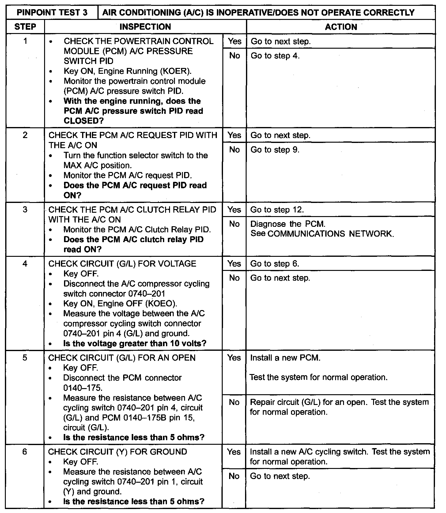 Pinpoint Test 3: A/C Does Not Operate/Does Not Operate Properly