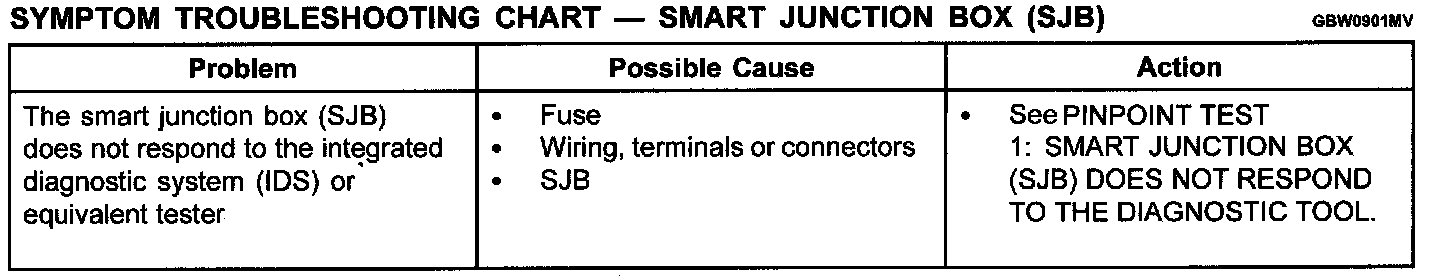 Symptom Troubleshooting Chart-Smart Junction Box (SJB):
