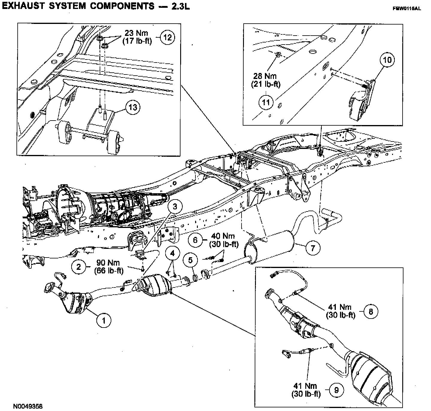 Exhaust System Components - 2.3L: