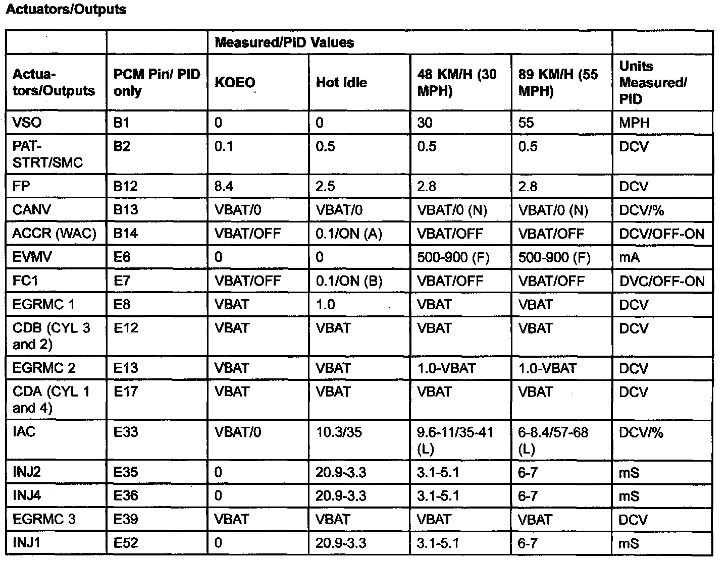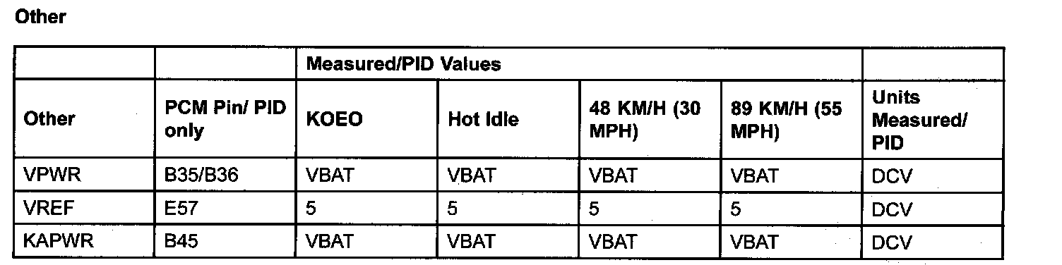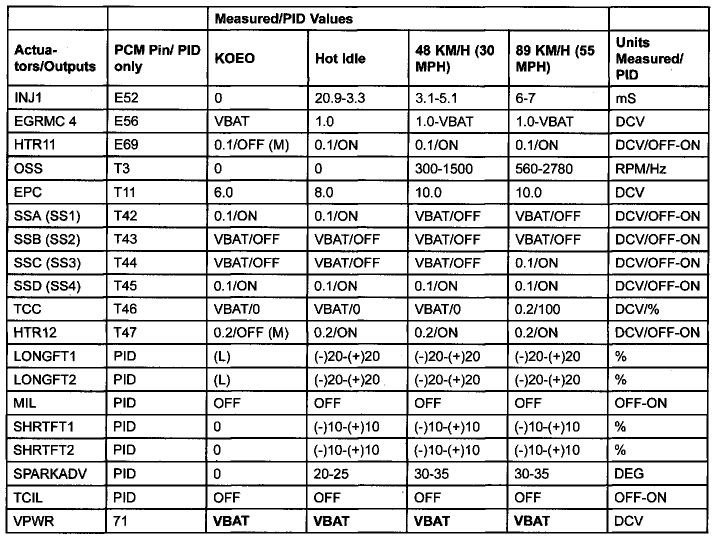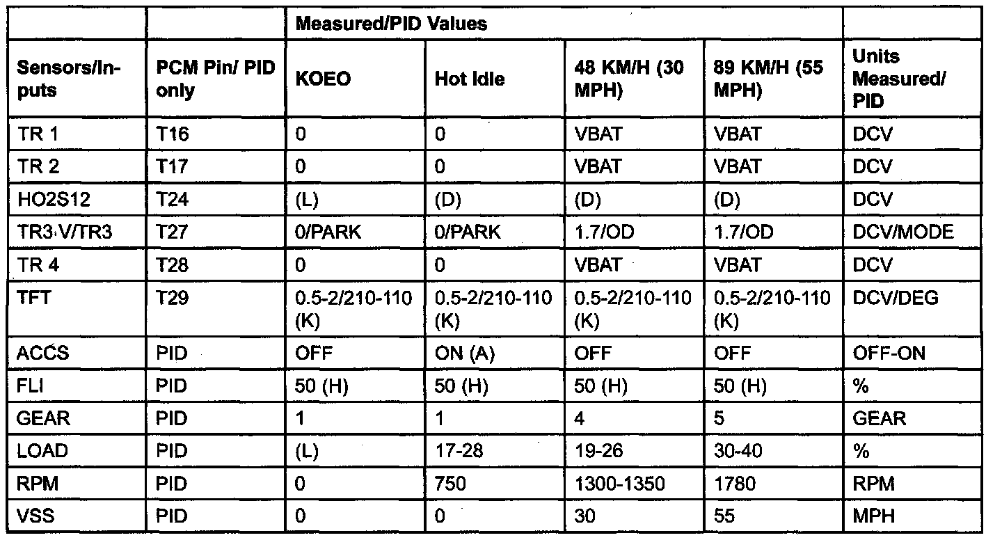 PID/DATA MONITOR ITEM TABLE
