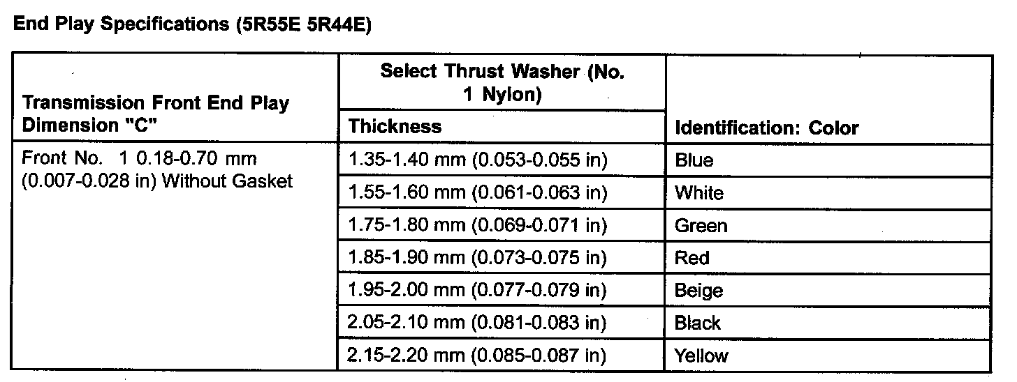 End Play Specifications (5R55E 5R44E) (Part 1):