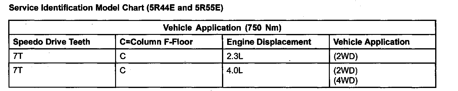 Band Adjustment And Torque Chart (5R44E and 5R55E)