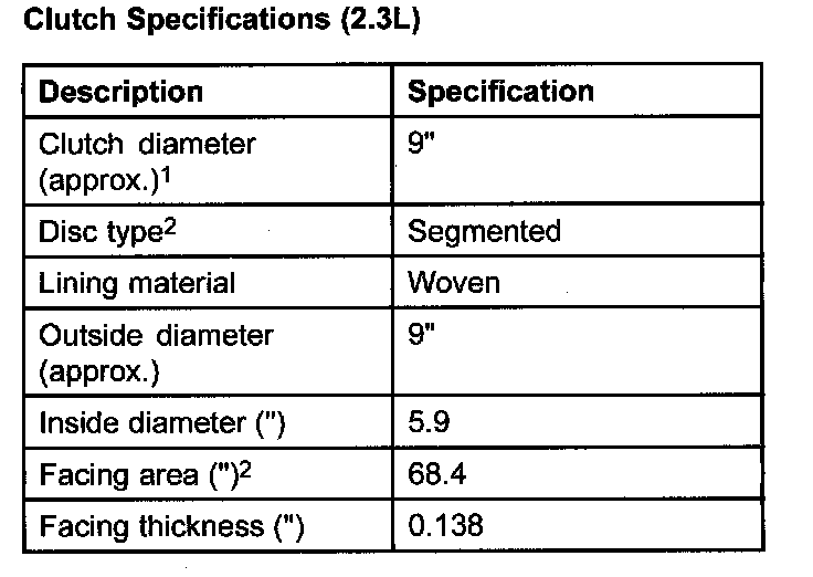 Clutch Specifications (2.3L)