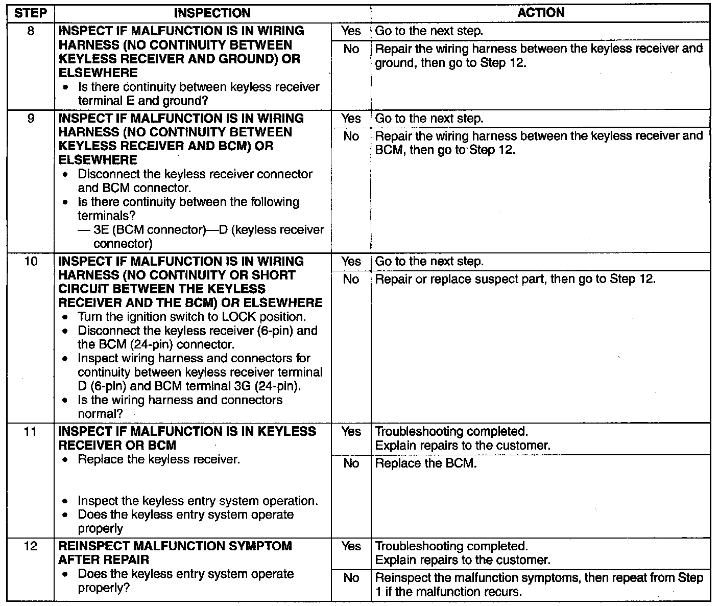 Symptom Troubleshooting [Keyless Entry System]