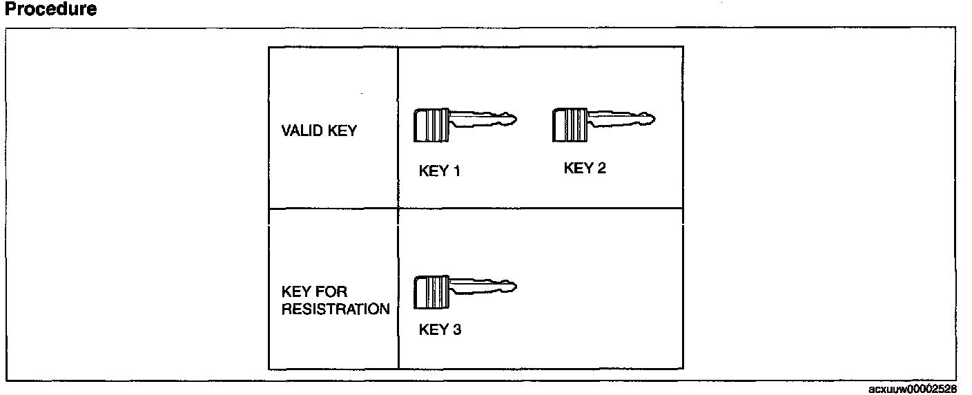 - If the key adding, programming, clearing, and immobilizer system construction parts replacement are performed, verify that the all keys can start the engine within 5 s after the procedure.