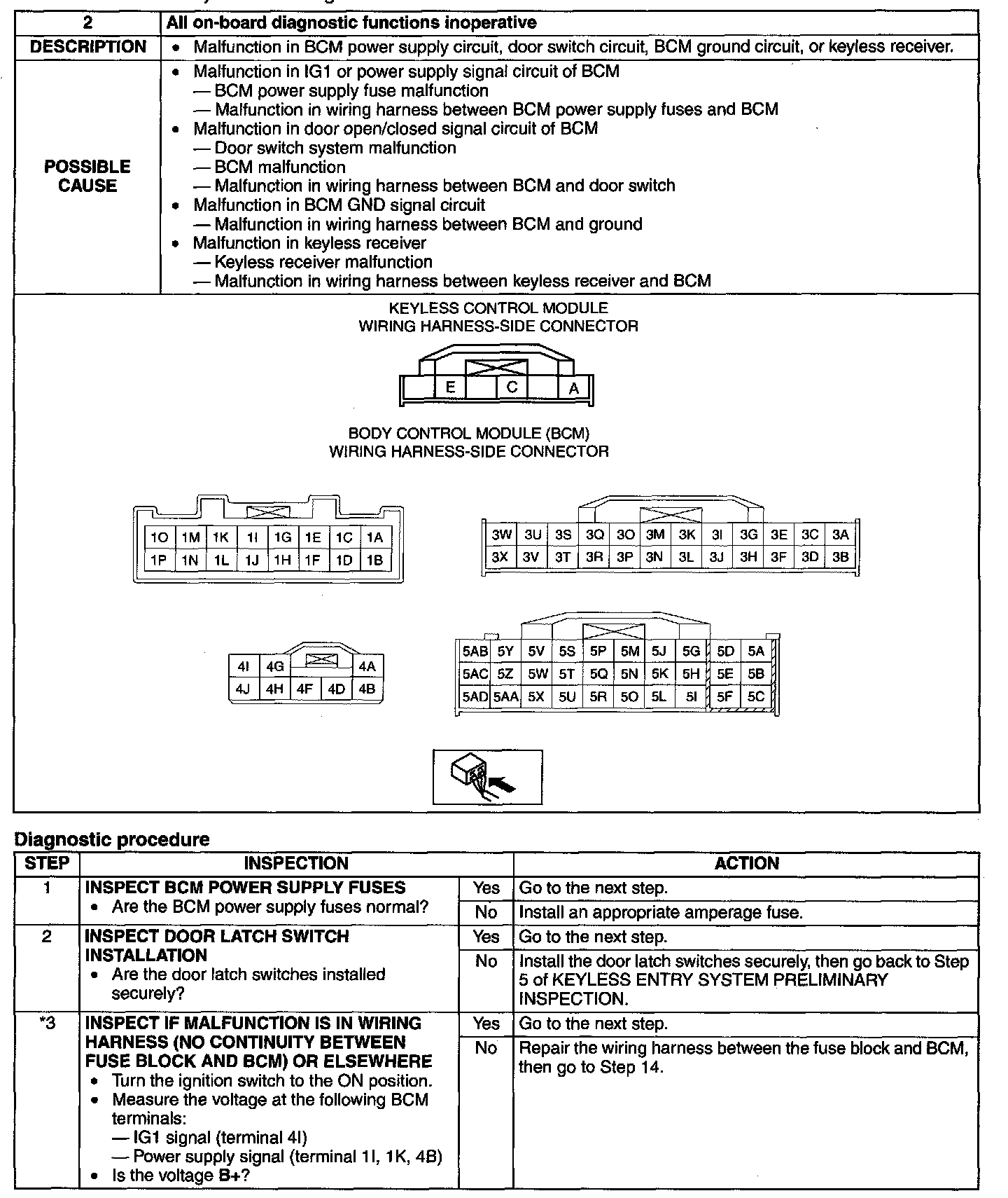 No.2 All On-Board Diagnostic Functions Inoperative [Keyless Entry System]
