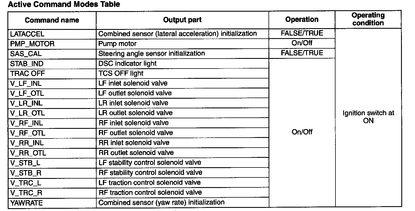 Active Command Modes Table:
