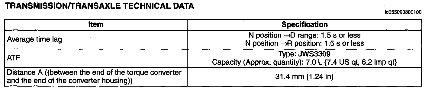 Transmission/transaxle Technical Data: