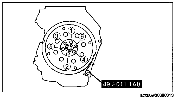 Tightening torque: 108-116 N-m (11.0-11.8 kgf-m, 79.7-85.5 ft-lbf)