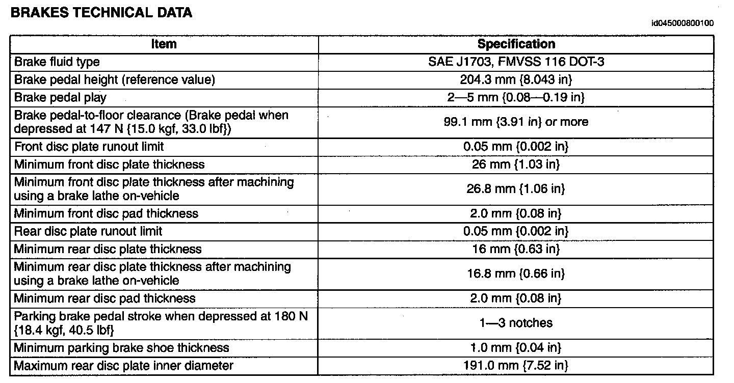 Brakes Technical Data: