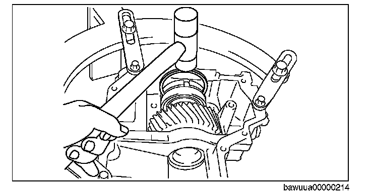 Caution: Be careful not to damage the oil seal when installing the drive gear shaft.