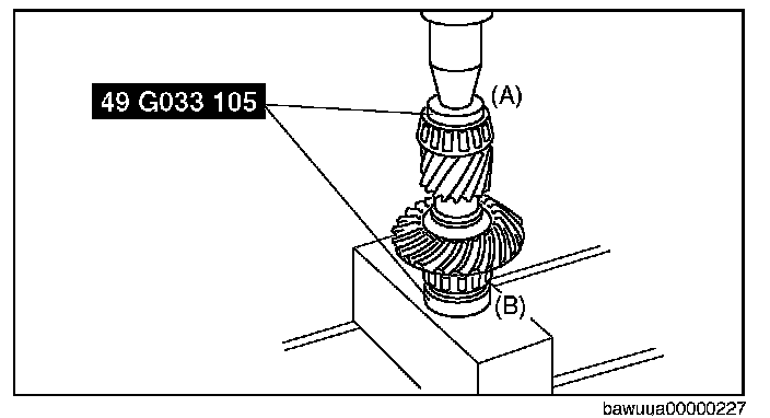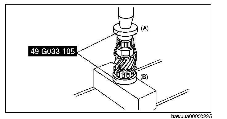 Front Carrier Component Assembly Procedure1. Using a press, assemble the opposite ring gear side bearing (side) to the ring gear shaft.