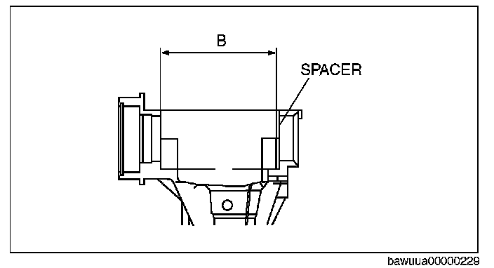 6. Measure the width of the front carrier ring gear installation area with the spacer installed. This is dimension B.