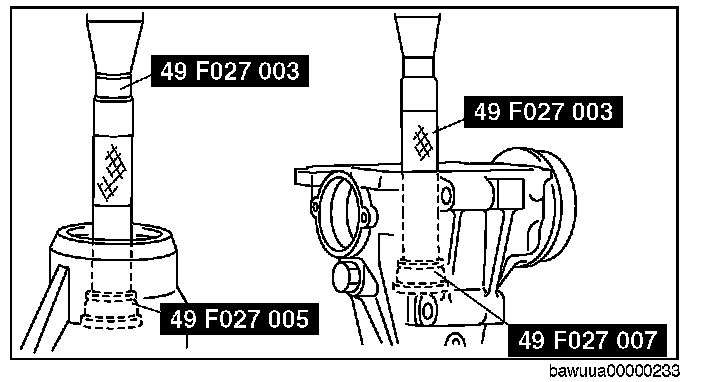 6) Position the SST (49 0727 570) on the driver pinion model.
