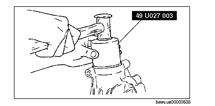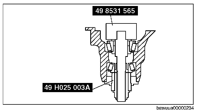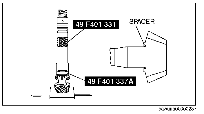 13. Using the plastic hammer, assemble the selected adjustment shim in between the spacer and bearing race as shown in the figure.