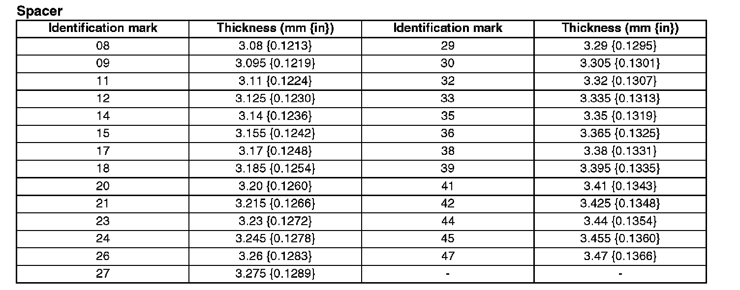 8) Measure the average value between the values of both sides measured in Step 7. This value is the spacer thickness which determines the pinion height.
