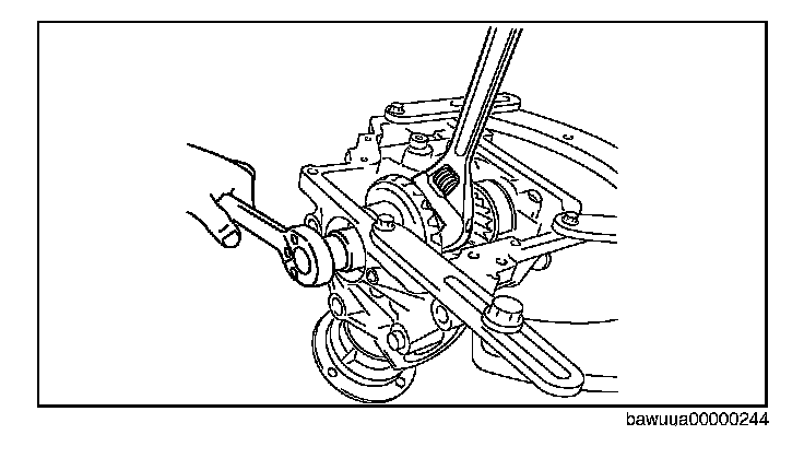 39. Using a suitable wrench, secure the ring gear shaft and tighten the new ring gear lockbolt to the specified tightening torque.