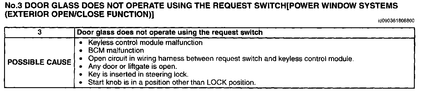 No.3 Door Glass Does Not Operate Using the Request Switch[Power Window Systems (Exterior Open/Close Function)]