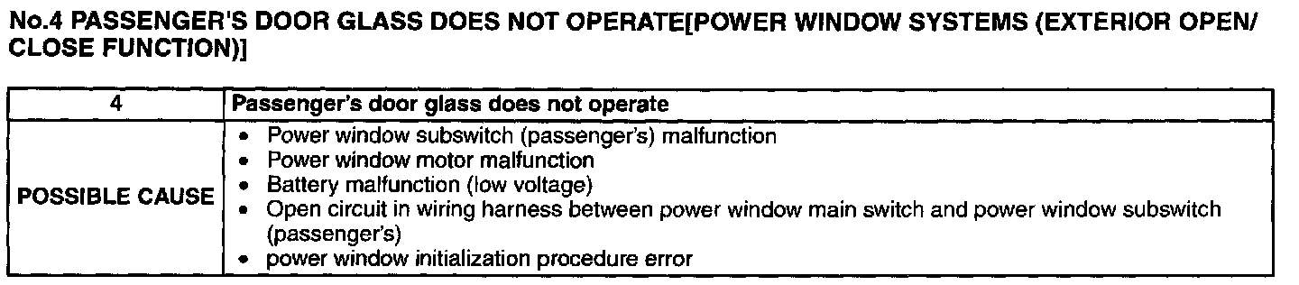 No.4 Passenger's Door Glass Does Not Operate[Power Window Systems (Exterior Open/Close Function)]