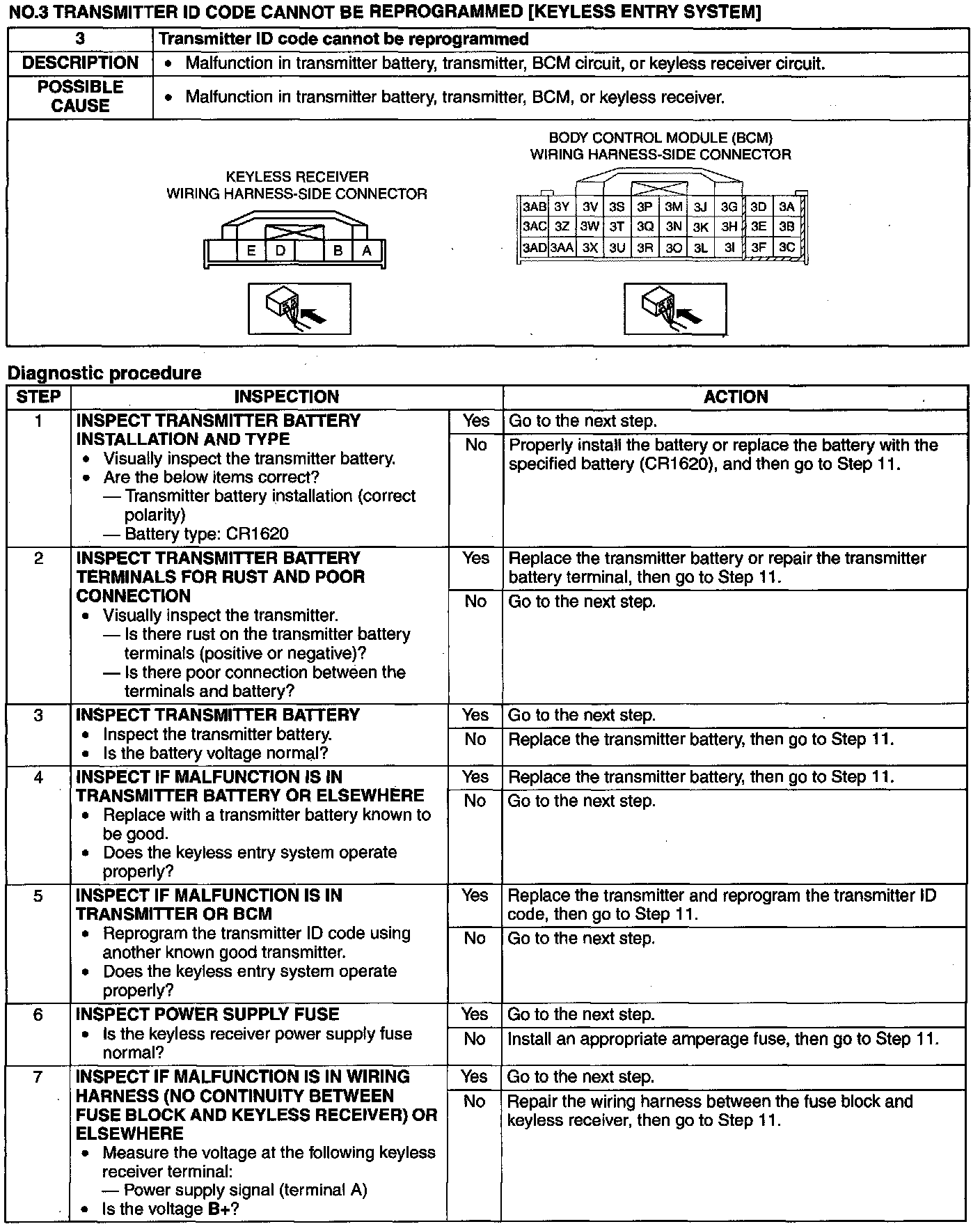 No.3 Transmitter ID Code Cannot Be Reprogrammed