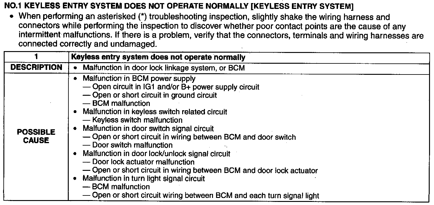 No1. Keyless Entry System Does Not Operate Normally