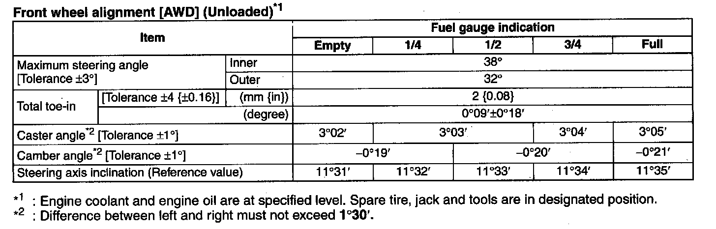 Front wheel alignment [AWD] (Unloaded)*1: