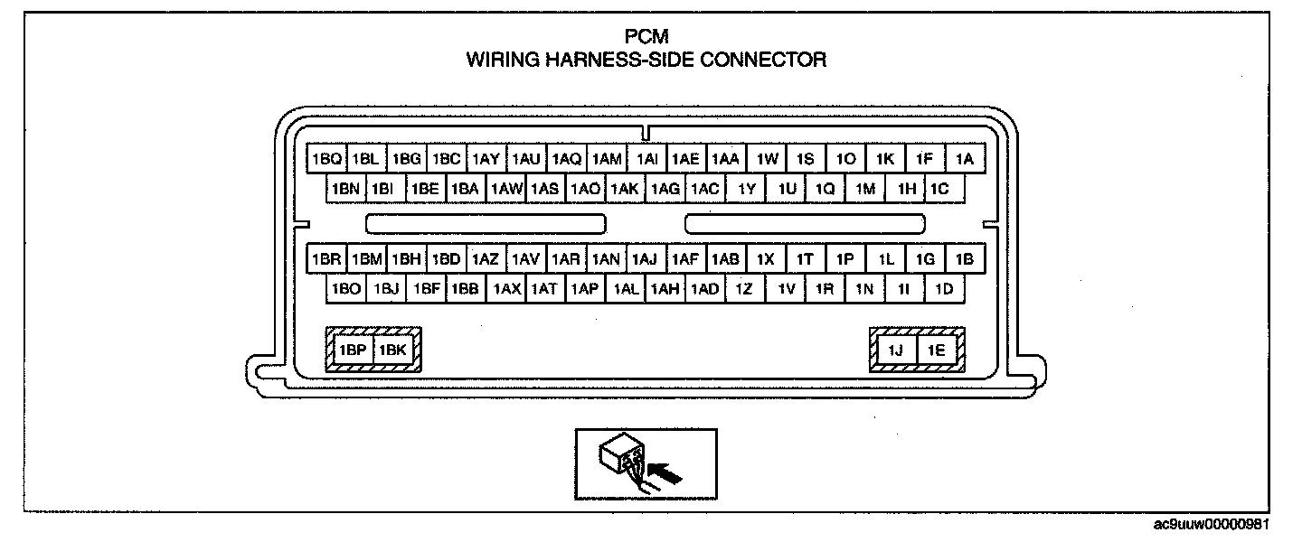3. Verify that the PCM terminal 1AC, 1AG and 1AK voltages are as shown in the following table.