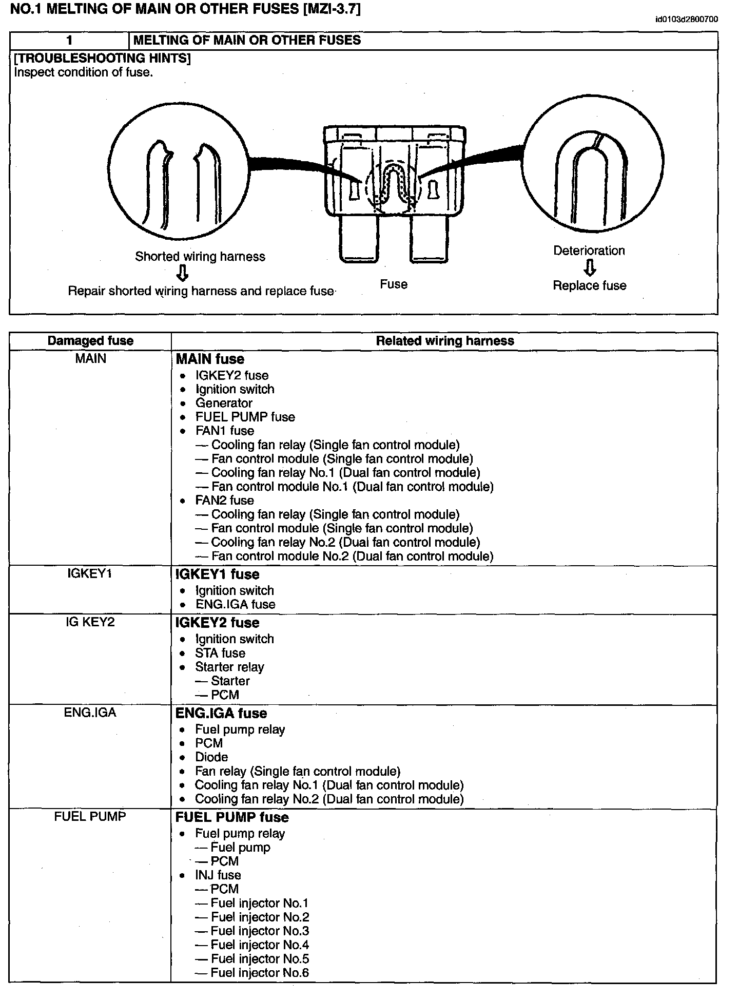 No.1 Melting Of Main Or Other Fuses (Part 1):