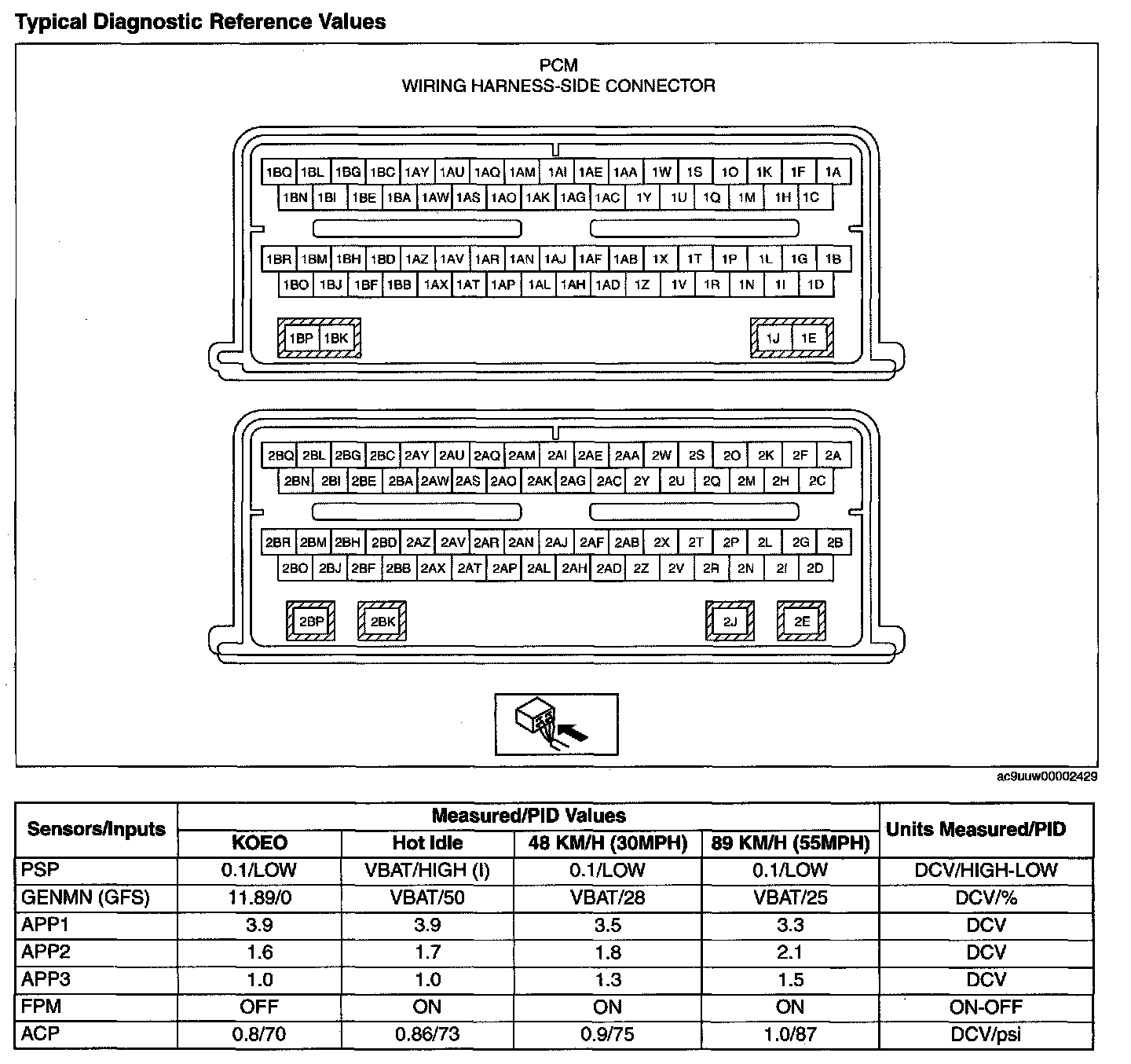 PCM INSPECTION [MZI-3.7]CAUTION: The PCM terminal voltage can vary with the conditions when measuring and changes due to aged deterioration on the vehicle, causing false diagnosis. Therefore determine comprehensively where the malfunction occurs among the input systems, output systems, and the PCM.
