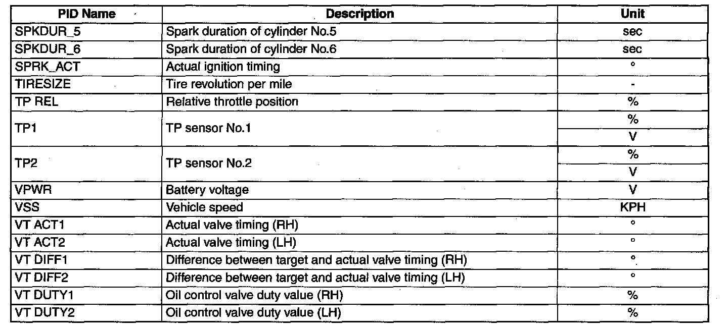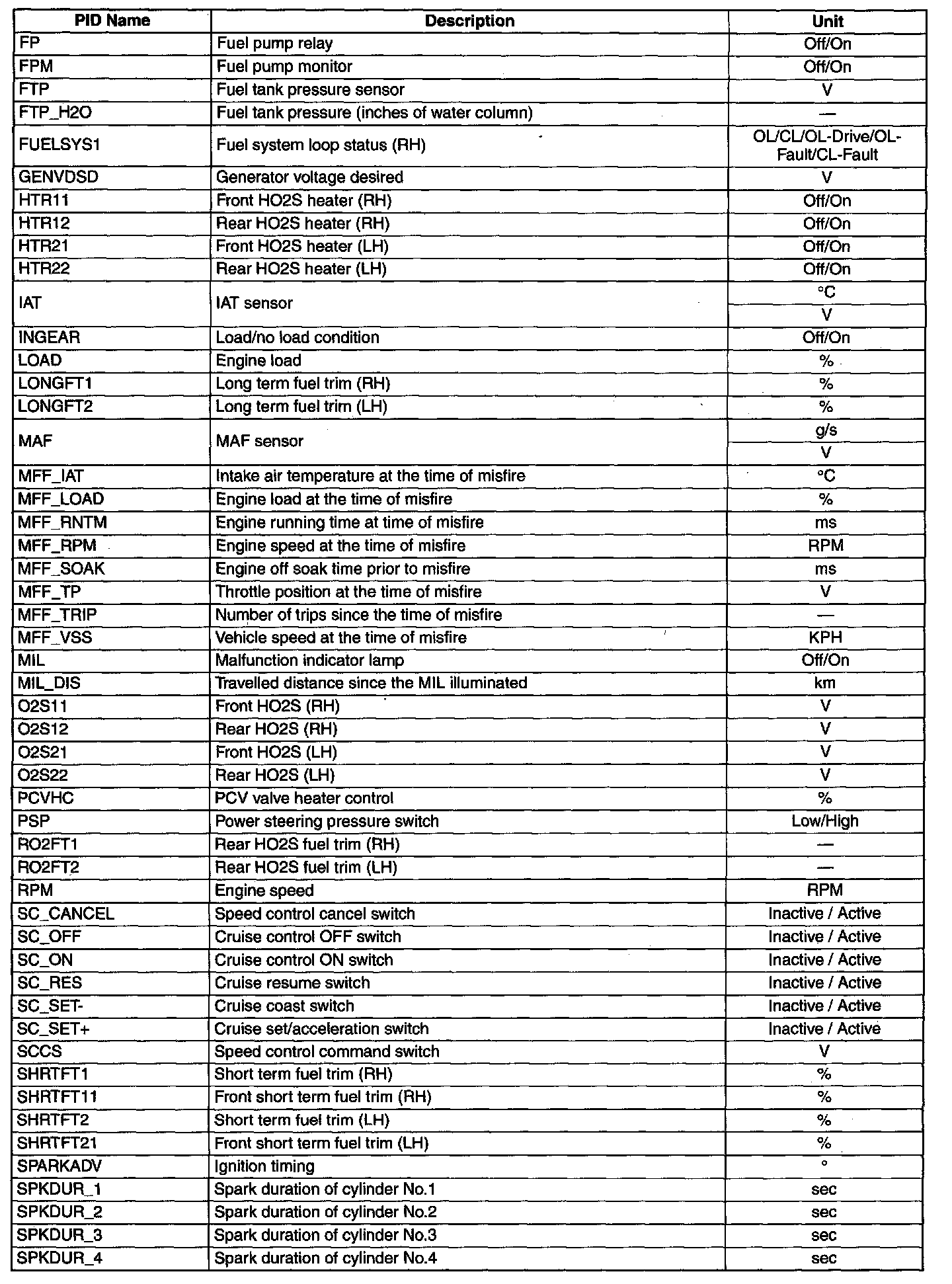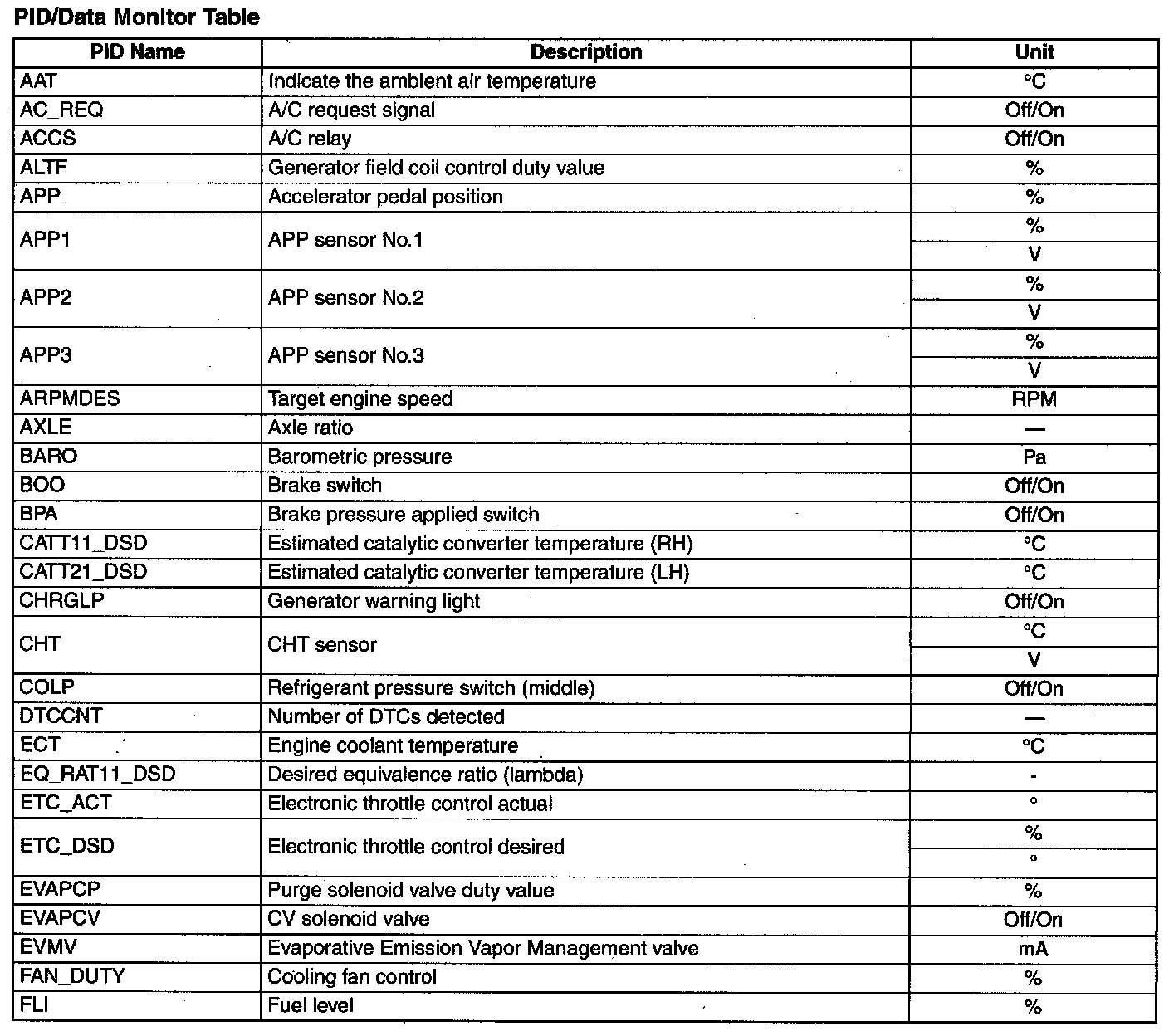PID/Data Monitor Table