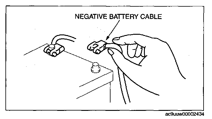 - Before disconnecting connectors or removing electrical parts, disconnect the negative battery cable.