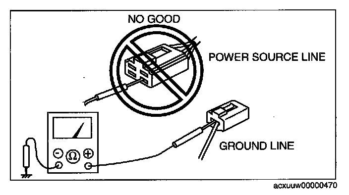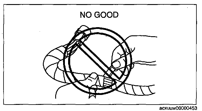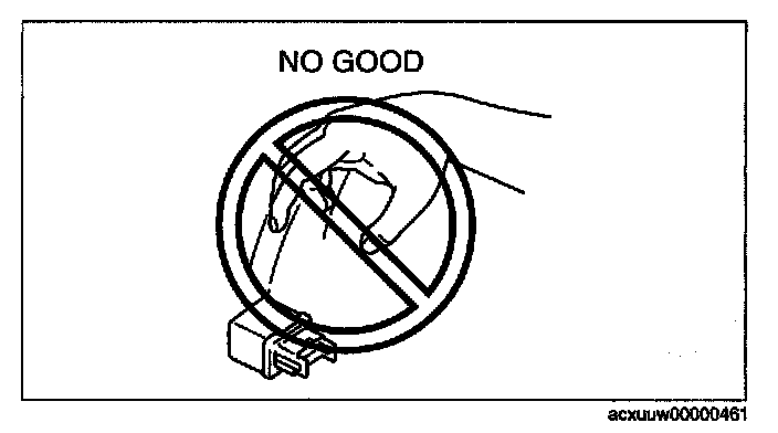 - When a tester is used to inspect for continuity or measuring voltage, insert the tester probe from the wiring harness side.
