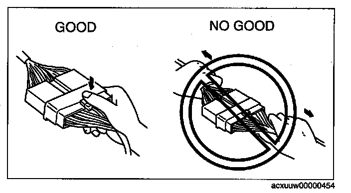 - When disconnecting a connector, grasp the connectors, not the wires.