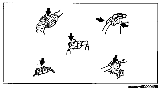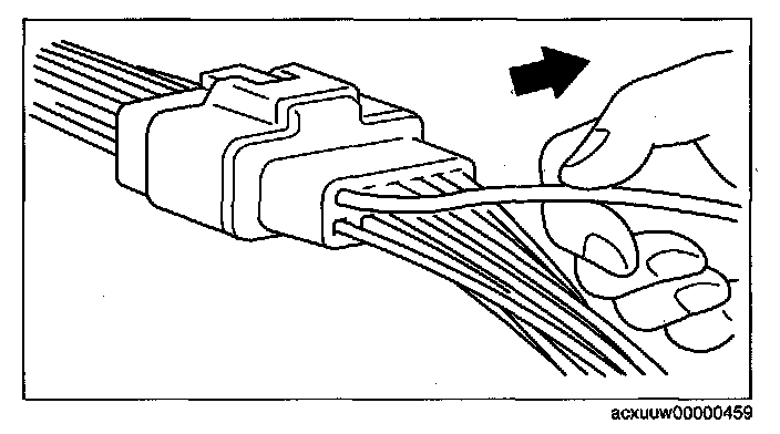- Inspect the terminals of waterproof connectors from the connector side since they cannot be accessed from the wiring harness side.