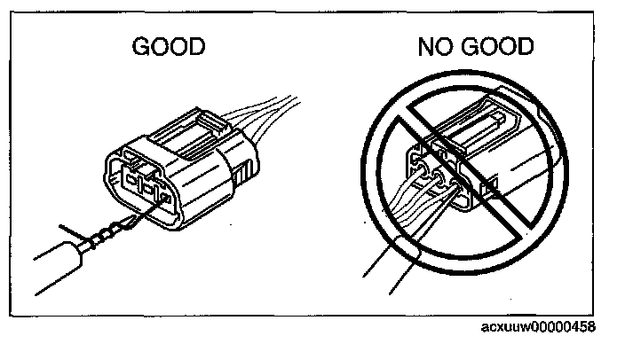 CAUTION: To prevent damage to the terminal, wrap a thin wire around the tester probe before inserting into terminal.