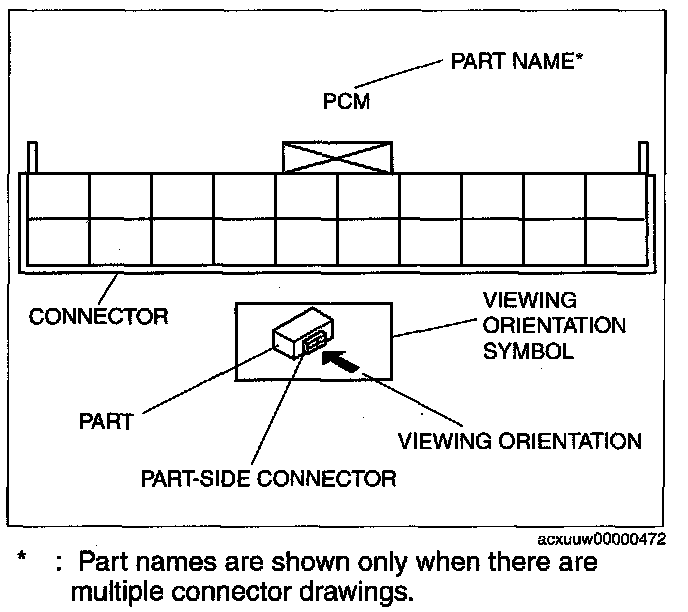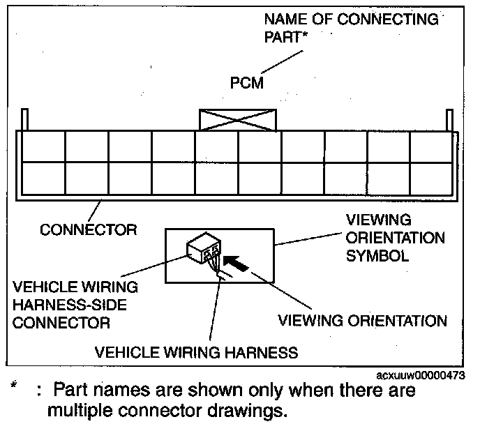 - The figures showing the viewing orientation are the same as those used in Wiring Diagrams.