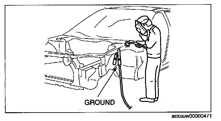 A vehicle has various electrical parts. To protect the parts from excessive current generated when welding, be sure to perform the following procedure.