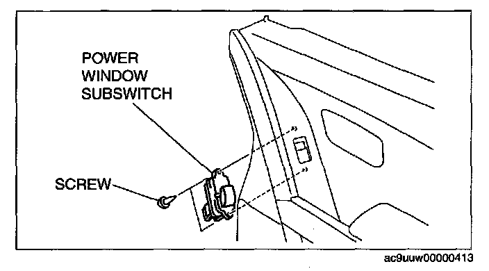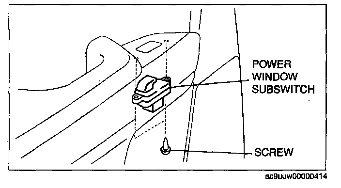 4. Remove the screw, and remove the power window subswitch from inside the front door trim.